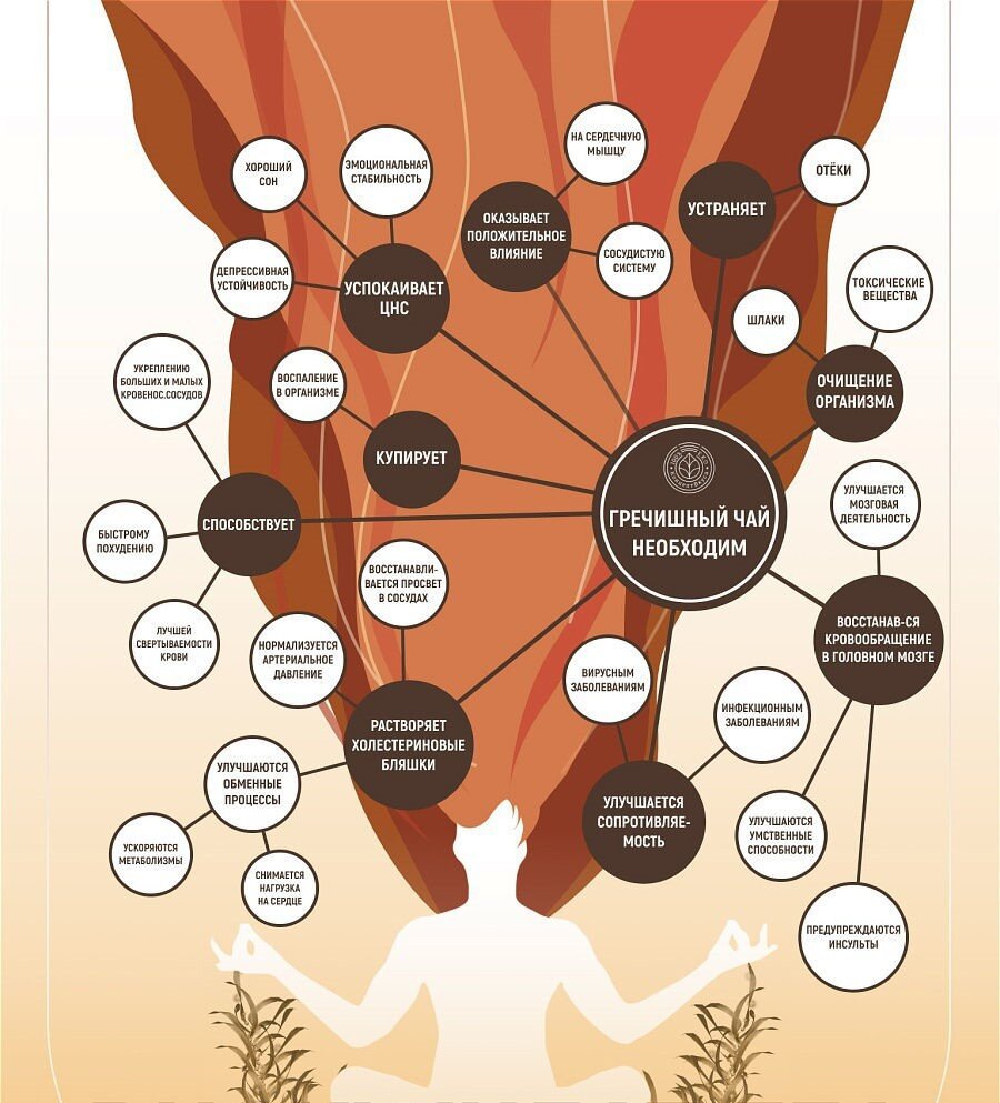 Кохання і визнання китайцями гречаного чаю пояснюється тим, що цей напій просто джерело корисних властивостей, які розкриваються у разі регулярного розпиття напою. Які властивості має настій на основі чорної татарської гречки: